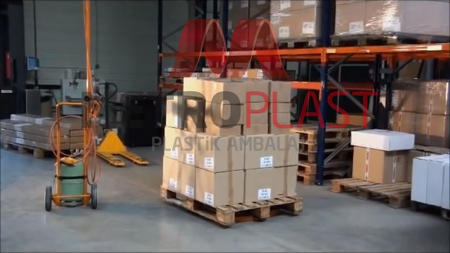Daha sonra palet örtüsü donarak malzemenin şeklini alır ve bu da malzemenin sallanmasını, devrilmesini ve akmasını engeller aynı zamanda dış etkenlerden korunmasını ve taşıma kolaylığı sağlar.